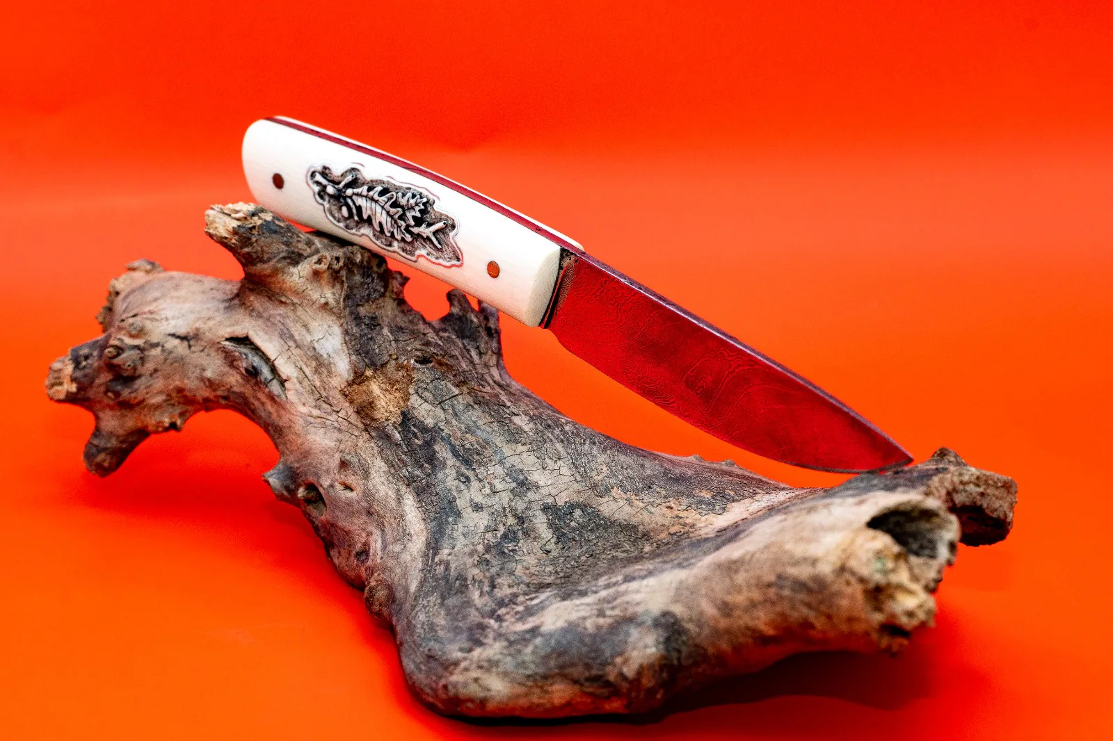 Damascus with VG10 core · Ivory & hand engraved image & silver inlay · 120mm